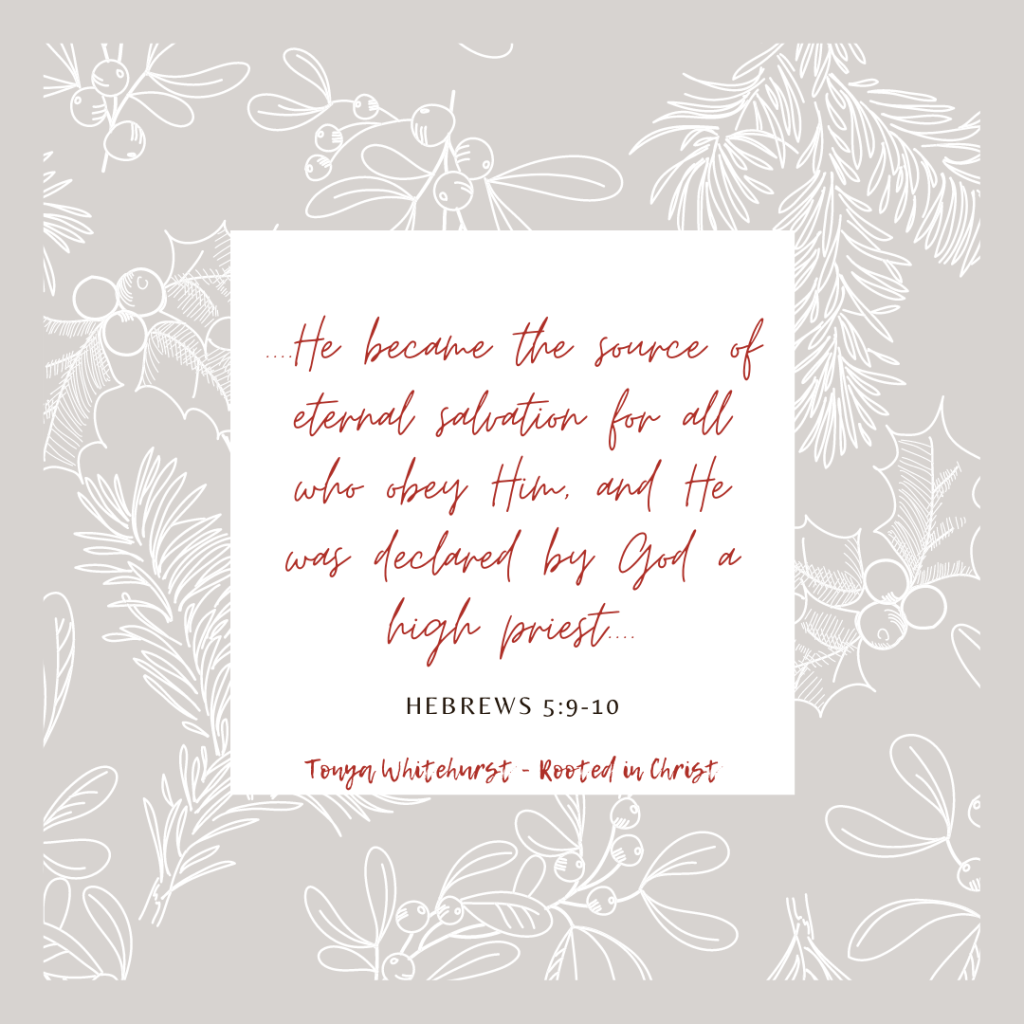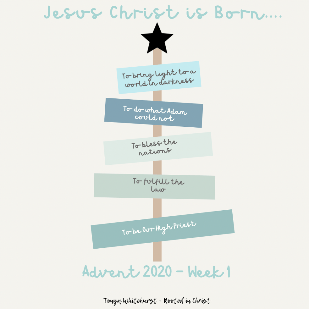 Father, thank You for reminding us this week that Jesus Christ brings light to a dark world, accomplishes what Adam could not, blesses all nations and all people, fulfills every stroke and letter of the law, and is our High Priest. Help us to keep our focus on these truths and help us to not become distracted with all the craziness of this season. May we take the time to be still and know who You are. Command our hearts and our souls Father. In Jesus Name, Amen